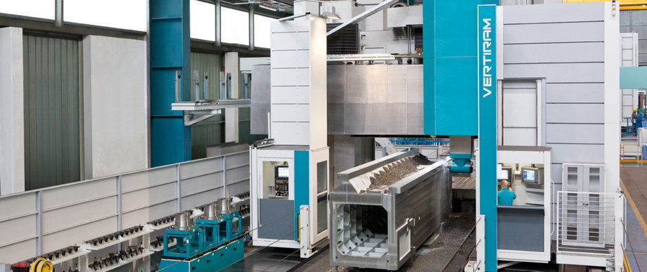 ●多種刀庫選項極大地提高了Vertiram龍門加工中心的生產(chǎn)效率:鏈式刀庫,安裝在立柱側面,容量為60到140個刀位;模塊化矩陣式刀庫,安裝在地面上,具有容量大、占地小的特點;落地矩陣式刀庫,配備機械手,可與X軸平行移動